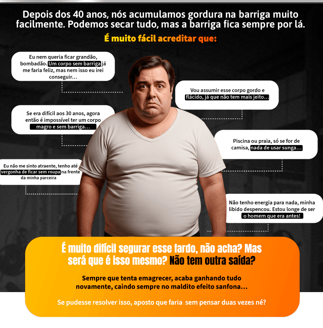 “Aos 40 anos eu acumulei uma barriga que pensei que não ia conseguir me livrar dela… Consegui e irei ajudar todo 40tão a conseguir desbloquear uma vida sem barriga 40+ também”